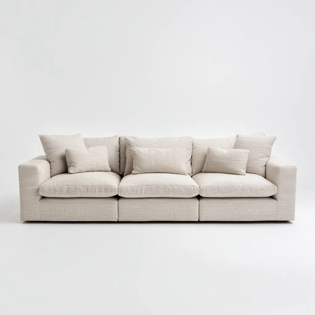 Ce canapé 3 places au design contemporain se caractérise par des proportions généreuses et des lignes équilibrées. Il s'intègre naturellement dans un salon spacieux et offre une assise confortable au quotidien.